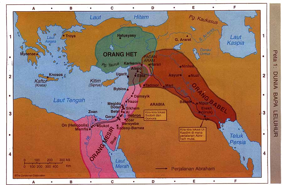Dalam peta di atas dijelaskan tentang peta situasi dan kondisi para leluhur bangsa Israel. Ada tiga daerah penting terkait dunia para leluhur bangsa Israel yaitu Daerah Orang Het, Daerah Orang Babel dan Daerah Orang Mesir. Bapa Abraham berasal dari Ur Kasdim, daerah Orang Babel. Namun bangsa Israe pernah diperbudak di Mesir.